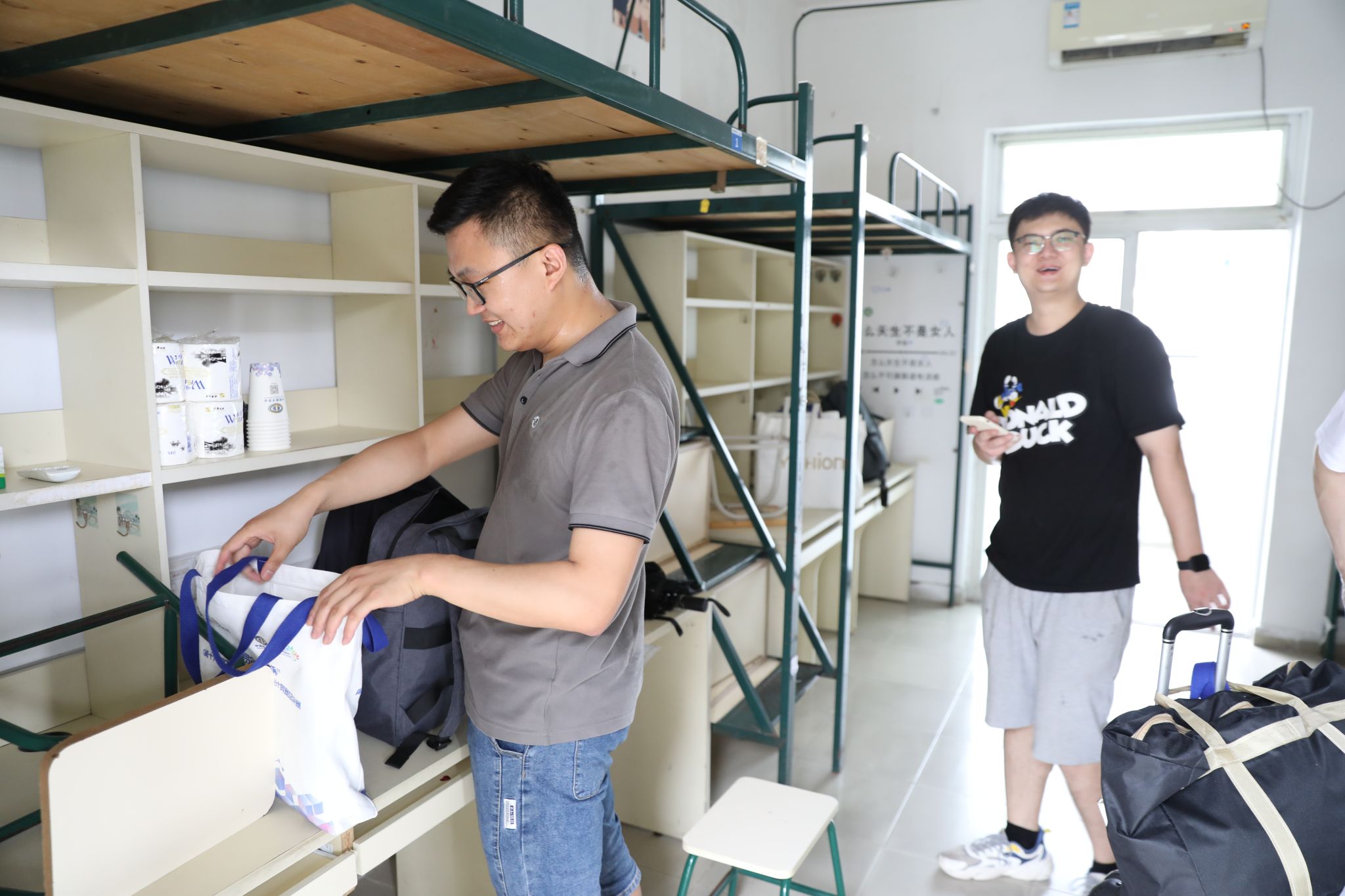 赛事期间,参赛选手们将入住我校莞逸、莞华、莞馨社区。为了迎接同学们的到来,每个宿舍都提前进行了清洁消毒,并备有枕头、被子等床上用品以及纸巾等生活用品。门口还张贴了欢迎牌,并为选手发放温馨提示,保障选手顺利入住、住得舒心。