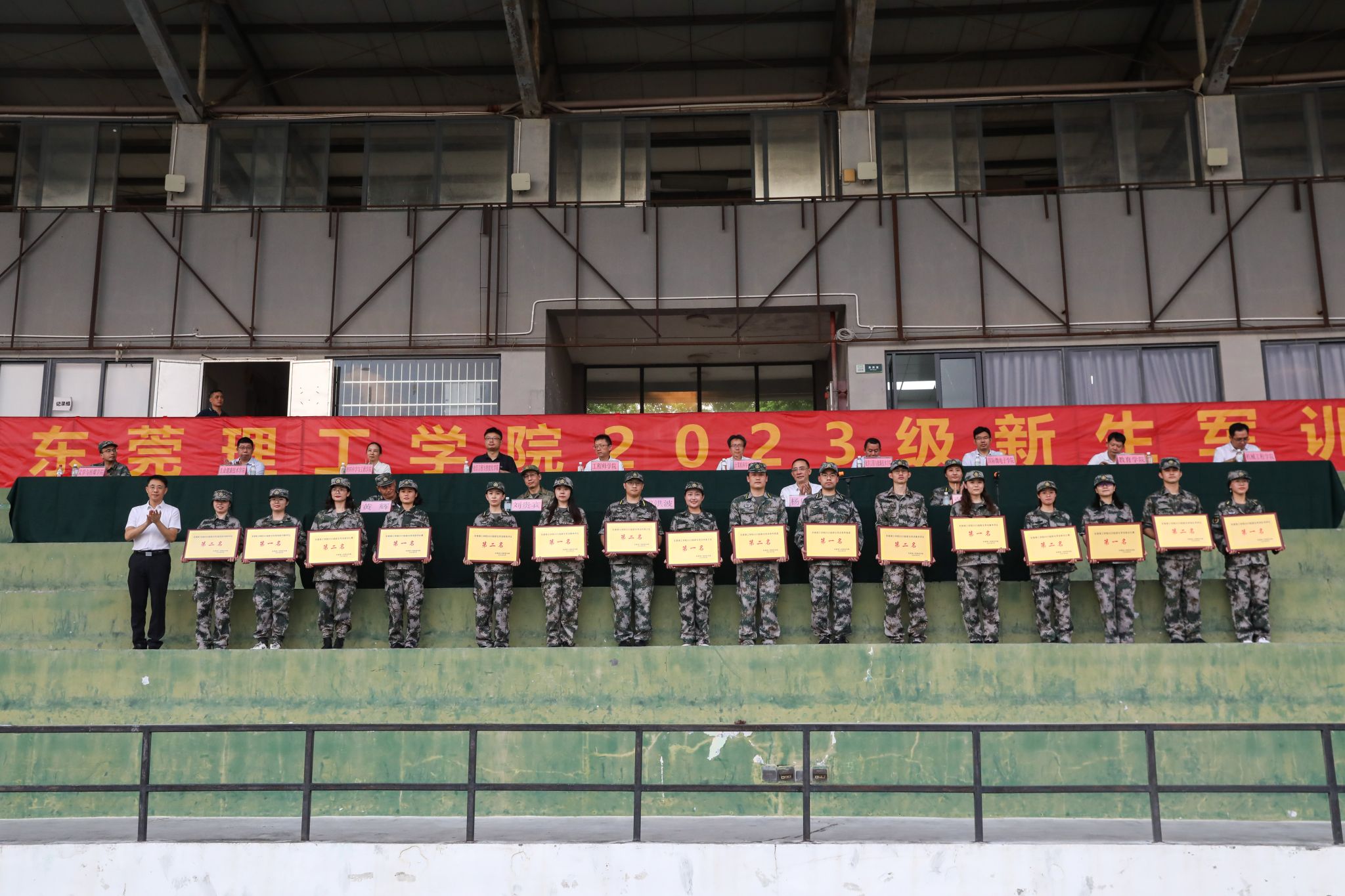 9月27日,国庆、中秋双节前夕,莞工2023级新生军训总结表彰大会在两校区举行。为期20天的2023级新生军训圆满落下帷幕,历经风雨的洗礼,顶住烈日的暴晒,齐心协力完成拔河、歌咏、拉练等项目,新生们在军训中实现了大学的第一次蜕变。