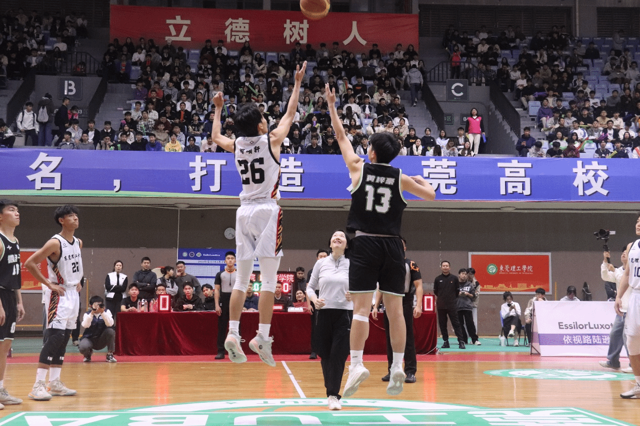 决赛当晚,松山湖校区体育馆内人声鼎沸,学校党委副书记、校长马宏伟,学校党委委员、党委宣传部部长邹琼等领导嘉宾与学生球迷共同到决赛现场为球员加油打气。随着裁判的一声哨响,2024年莞工UBA冠军争夺赛在教育学院(师范学院)和国际微电子学院之间展开。双方球员迅速进入状态,展开激烈的攻防大战,传球、突破、抢断每一个动作都扣人心弦,每一个进球都引来球迷的阵阵欢呼。除双方球员场上精彩比赛外,总决赛现场带来了花样篮球操、琵琶武术融合节目与街舞等形式丰富的暖场节目表演,赢得现场观众阵阵掌声。经双方四节比拼,教育学院(师范学院)凭借场上更优秀的表现,夺得冠军。