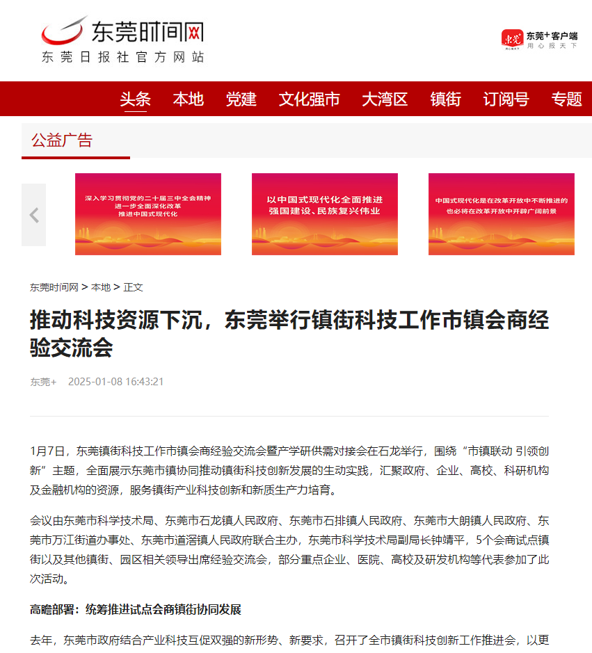 通过经验分享、产学研对接及机制创新,东莞在科技资源下沉、区域协同治理和企业服务能力提升方面初步取得了一定成效。未来,东莞将以机制创新为驱动,持续深化市镇联动,动态完善市镇联动服务体系,逐步构建多层次的创新服务生态,加速传统产业向高端化、智能化转型,同时激发新质生产力,力求从区域协同走向全国领先,为东莞在粤港澳大湾区及全球产业链中的地位奠定基础。