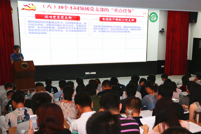 此次培训,采取专题辅导和经验分享相结合的方式进行。在培训班上,校党委组织部部长彭晓波,根据新时代基层党建的新要求,对《中国共产党支部工作条例(试行)》和《中国共产党党员教育管理工作条例》解读,并对近期的基层党建工作进行了安排;校党委委员、党委组织部正处级组织员李培经,就如何提高基层党务骨干的履职能力,作了题为《不忘初心、牢记使命——争当忠诚干净担当的基层党务干部》专题讲座;校党委组织部组织科科长曾鹏举,根据新时代发展党员工作的要求和日常工作中存在的问题,讲解了《发展党员工作规程》;文学与传媒学院原中文系教工支部书记张斌华老师和教育学院学生党支部书记诸小妮老师,就如何发挥党支部战斗堡垒作用和支部书记带头作用等方面,作了基层党建工作经验分享。