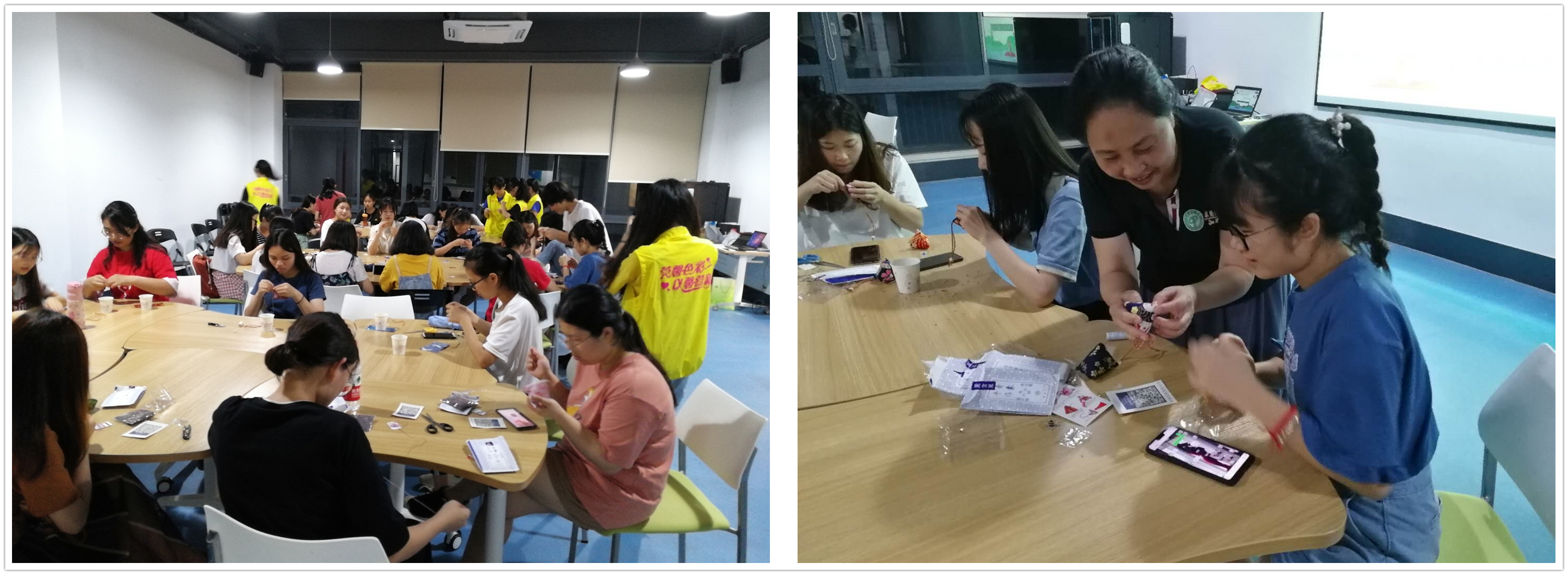 6月5日,学生社区知行学院莞馨分院与DIY手工协会合作,开展了“情浓端午,余馨香囊”社区庆端午活动。学生社区知行学院常务副院长苏亚玲到场与同学们一起交流分享端午习俗和如何制作香囊。学生中心A108室里,飘荡着阵阵芳香,不时传来欢声笑语。