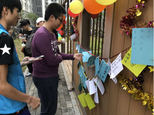 学生社区知行学院莞博分院与教育学院(师范学院)团总支、志愿服务站以及化学工程与能源技术学院团总支、学生会志愿服务站在莞博社区活动室和小亭子开展“冬至将至,温暖同行”为主题的冬至活动,师生一起包饺子,猜灯谜,分享亲手做的饺子汤圆。