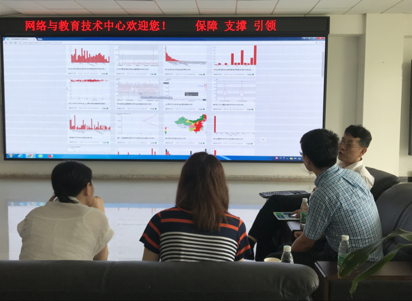 随后,网络中心负责人向秦征一行着重就学校大数据平台建设、网上办事大厅建设与应用、大数据治理工作进行了详尽说明和系统演示,并提出了我校在教育大数据、智慧教育和教育管理信息化等方面的需求。