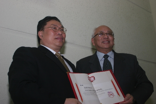 当天晚上,我院敦聘Dr.Peter George、陈万华博士为名誉教授仪式在图书馆学术报告厅举行。杨晓西向两位颁发了聘书。