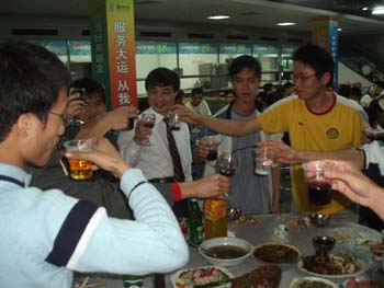 在洋溢着浓浓春意的气氛中,各位领导举杯向同学们祝酒,师生频频举杯。食堂内笑语如潮,餐桌旁欢声不断。融洽、祥和、热烈的气氛让每一位远离家乡的学子们深切感受到家一般的温暖,体味到辞旧迎新之际的温馨和幸福。