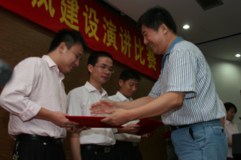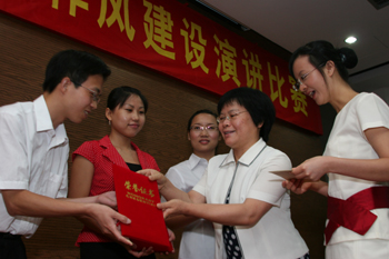 5月29日,机关作风建设演讲比赛在学术交流中心报告厅举行。8名选手代表机关8个党支部参加比赛,他们分别以各自身边感人的事例,声情并茂地演绎对机关作风建设的理解。