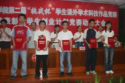 据了解,学院第二届“挑战杯”学生课外学术科技作品竞赛于2006年11月至2007年3月成功举行,本次活动有近400名学生参加,共收到申报参赛作品77件,在我院掀起了一股活跃校园科技创新和学术研讨的良好氛围,受到广大学生的欢迎,取得了良好的效果。
