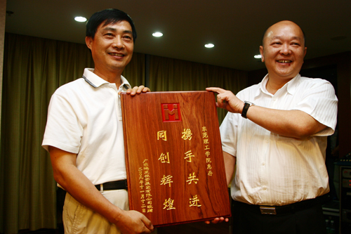 广东鸿发集团投资有限公司向我校赠送纪念品。