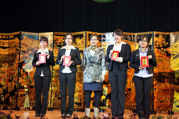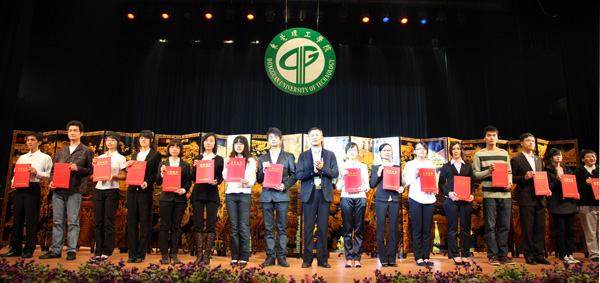 当晚,我校共有2674名同学获得各类奖学金,奖金总额达220多万元。典礼上还表彰23个先进班集体、67名优秀大学生标兵、411名优秀大学生和421名优秀学生干部。