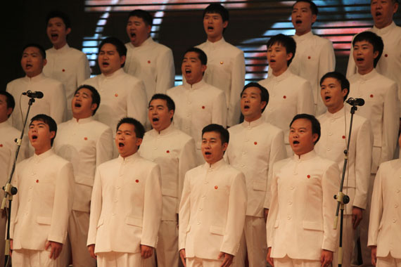 老师们演唱红歌。