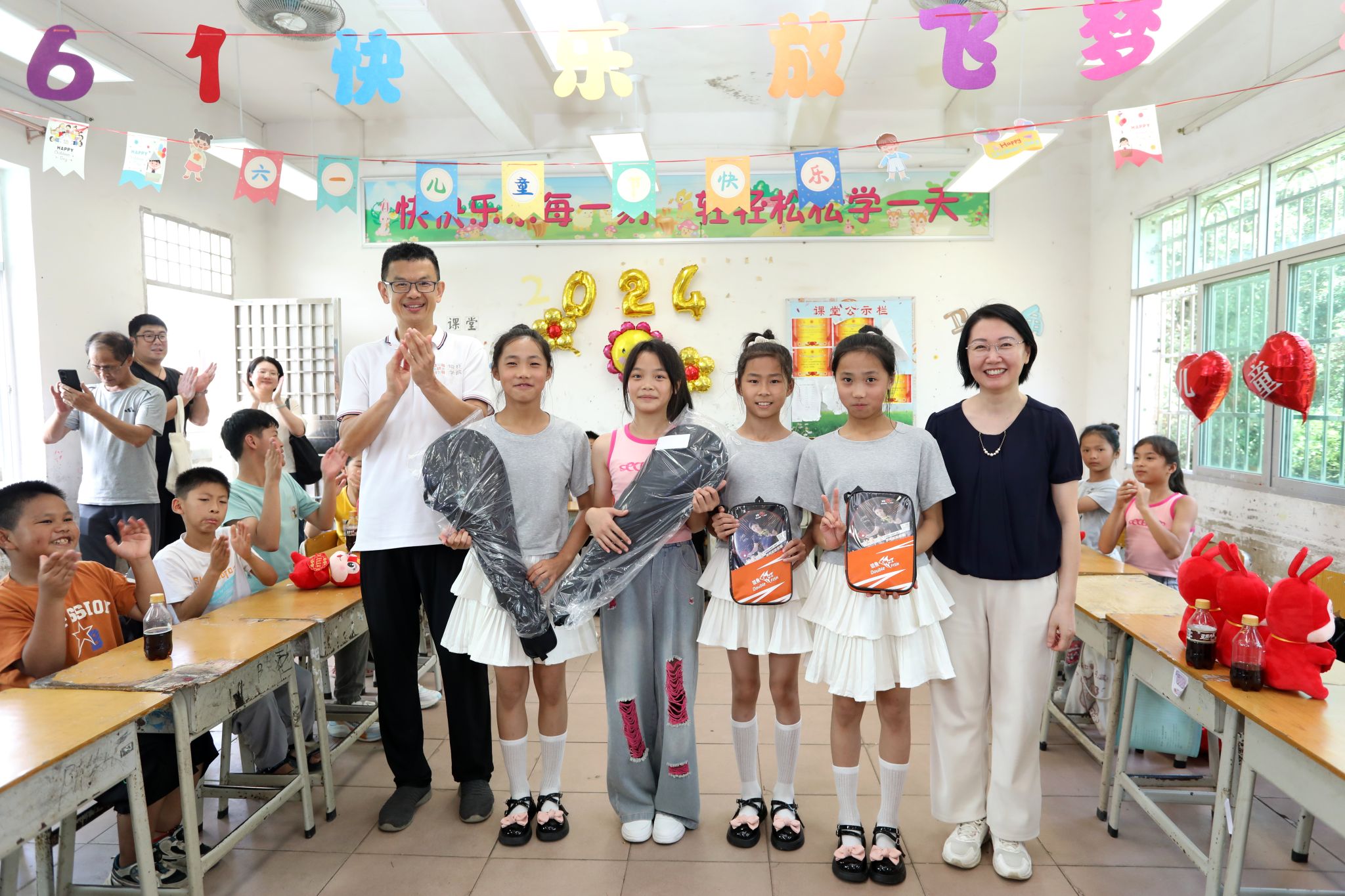 在新丰县来石小学、新村小学,小朋友们正在举行丰富多彩的儿童节活动。小分队一行到校看望在此支教的文传学子,了解其生活、工作情况及目前存在困难,并勉励同学们坚守岗位、脚踏实地,做好支教工作。为了丰富小学文体设施,小分队还为小朋友带来了一批儿童读物绘本、体育用品。文传学院外籍教师Alan与同学们进行了现场教学互动,小分队代表积极参与学校篮球赛,与小朋友们共庆儿童节。