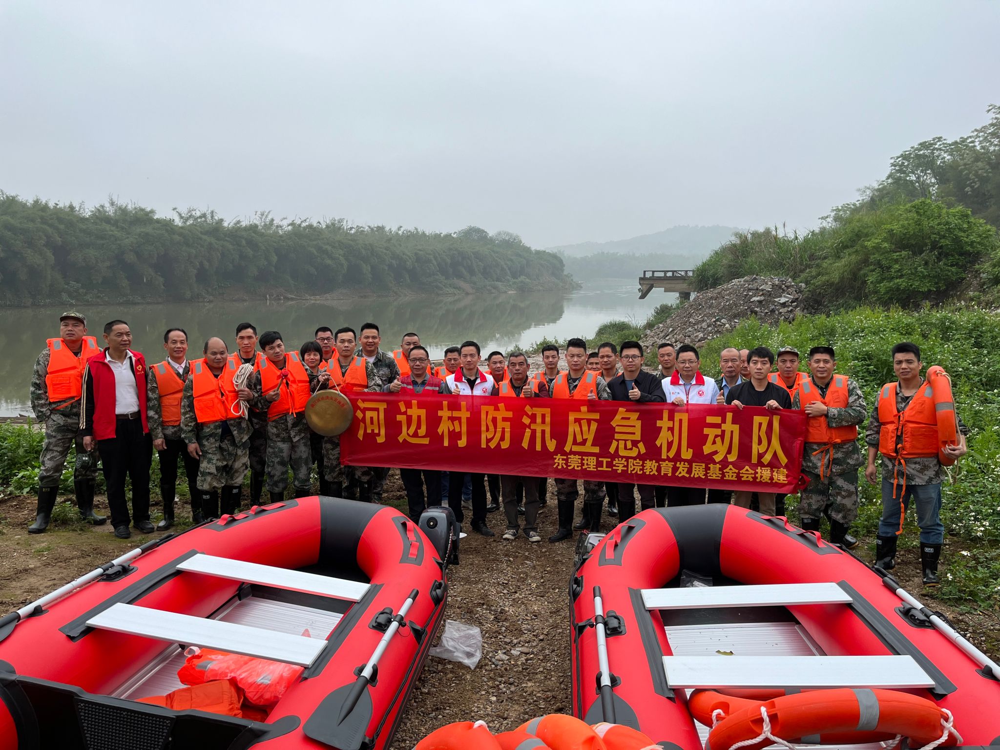 近日,粤北连日大雨,北江水系进入汛期。为应对汛期极端天气,积累防汛实战经验,确保安全度汛,4月11日,由学校基金会捐赠援建的白土镇河边村防汛应急机动队正式成立,并联合白土镇应急救援中队、东莞驻白土镇帮镇扶村工作队以及镇村干部开展首次实战防汛演练。
